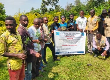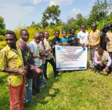 Le projet de reboisement consistait à la mise à terre de 3 000 plantules dans le village d'Iko, situé en territoire de Kalehe, province du Sud-Kivu en RDC. Cette initiative vise à restaurer les écosystèmes dégradés, lutter contre l’érosion des sols, améliorer la régénération des forêts et contribuer à la lutte contre le changement climatique, tout en sensibilisant les communautés locales à l’importance de la préservation de l’environnement.
